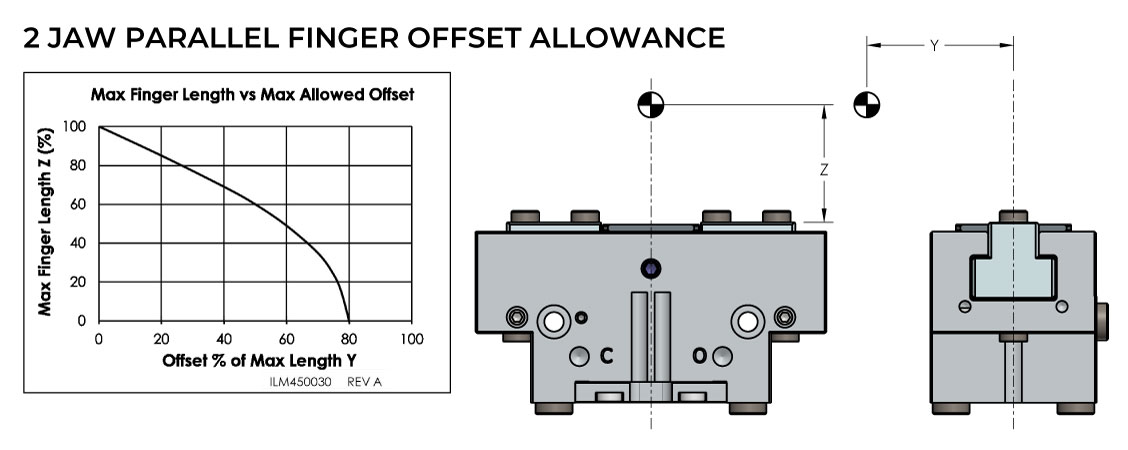 - MC = Normally Closed – The gripper stays closed in the event of an air loss