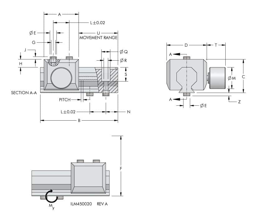 | Model No. | A | B | C | D | E | G | H | J | L | M | N | Q | R | S | T | U | Z | Pitch |