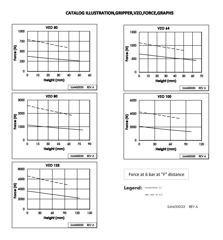 LEARN MORE Universal Grippers Force Graphs | Two Jaw Finger Offset | Install / Maintain Force Graphs VGP Force Graph VSO Force Graph VZP Force Graph VZO Force Graph 2 Jaw Parallel Finger Offset Allowance Max allowable Y axis finger offset distance based on % of max finger length. VGP shown, but offset applies to all two jaw grippers