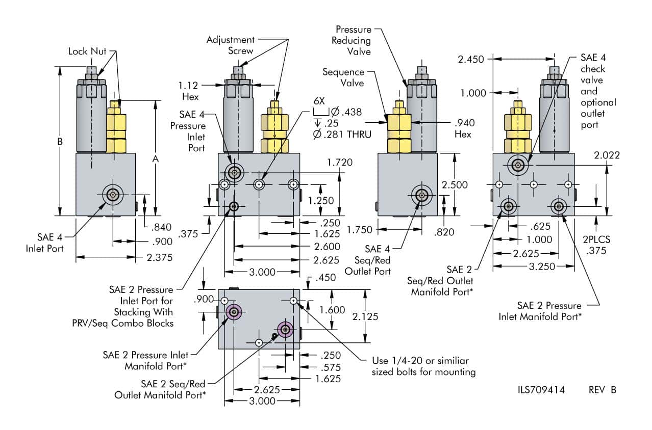 * SAE 2 Ports are counterbored for O-rings that are used in manifold mounting applications. Ø .09/.15 Feed Holes.