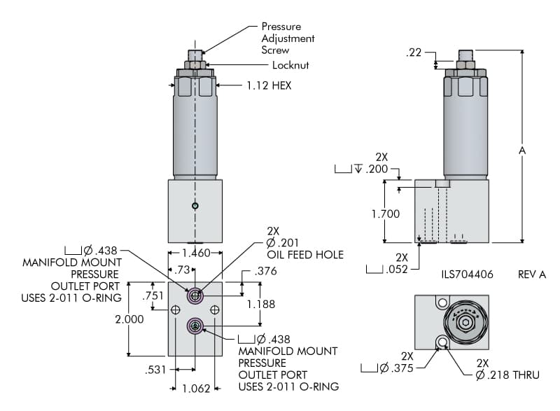 leakage) back to system reservoir. - Low profile, compact manifold that allows for smaller mounting area for the PRV.