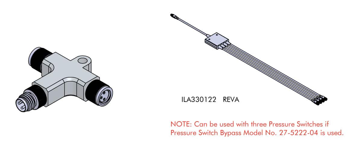 | 33-0112-23 | KIT, QUAD CIRCUIT, FIXTURE TRANSMITTER | Fixture Transmitter with four cables, four pressure switches, and Quad Circuit Junction Adapter |