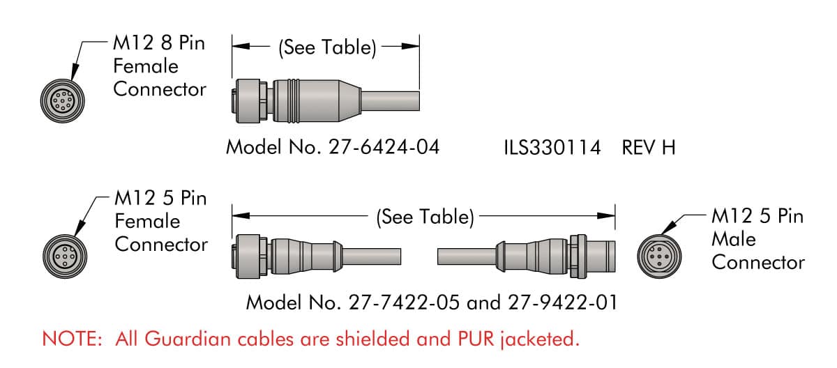 | 27-9422-01 | CABLE, SHIELDED, M12 MALE, M12 FEMALE, 5 POLE, 10 M | Female Straight | Male Straight | 32.8 |