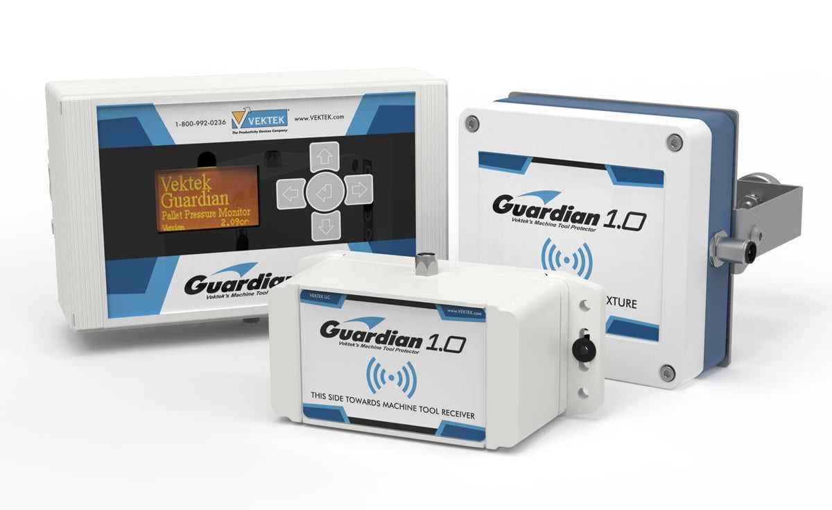 The Guardian™ gives you wireless hydraulic pressure monitoring configured for your machine tool fixtures. Equipped with an IP 67 rated sealed pressure switch, sealed Fixture Transmitter and shielded industrial connectors; Guardian™ ensures positive pressure monitoring even in the harshest environments. Best of all, you will enjoy easy pressure monitoring with no interference issues.