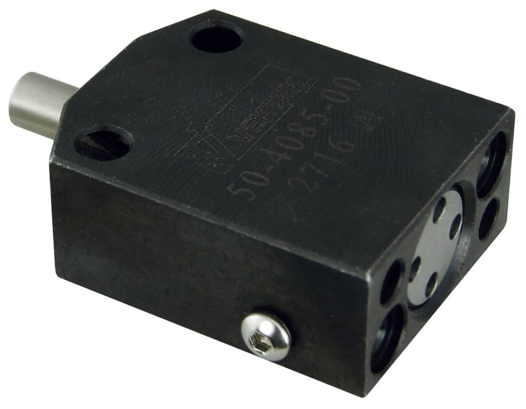 The pneumatic confirmation valve confirms the stage of loading before or after clamping. It is adaptable to multiple devices including: swing clamps, link clamps, cylinders and supports. Avoid machine crashes by confirming specific actions before you cycle your machine. It is designed to be used in both coolant and dry environments and is easily mounted either vertically or horizontally. Confirmation at its finest!