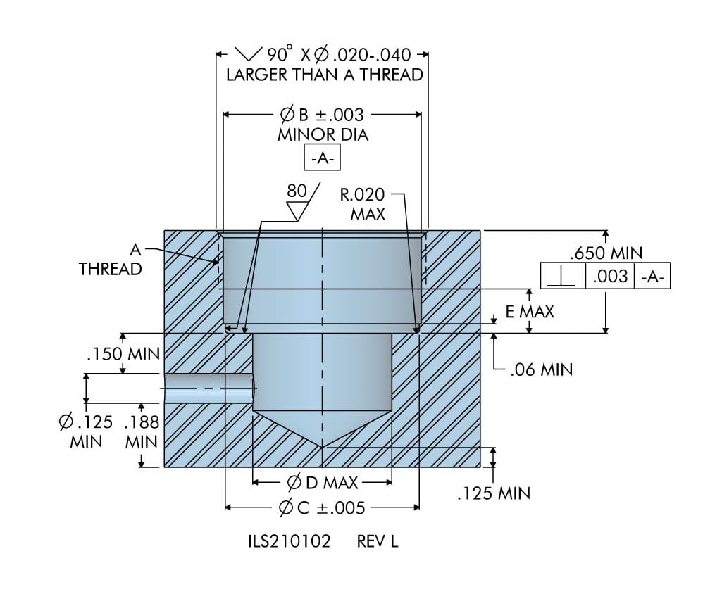| 21-0105-04 | 3/4 - 16 | 1.44 | 0.25 | 0.203 | 0.98 | 0.03 | 0.25 | 0.63 | 8 - 32 X 0.25 | N/A | 0.656 | .035 Metal / .040 Composite |