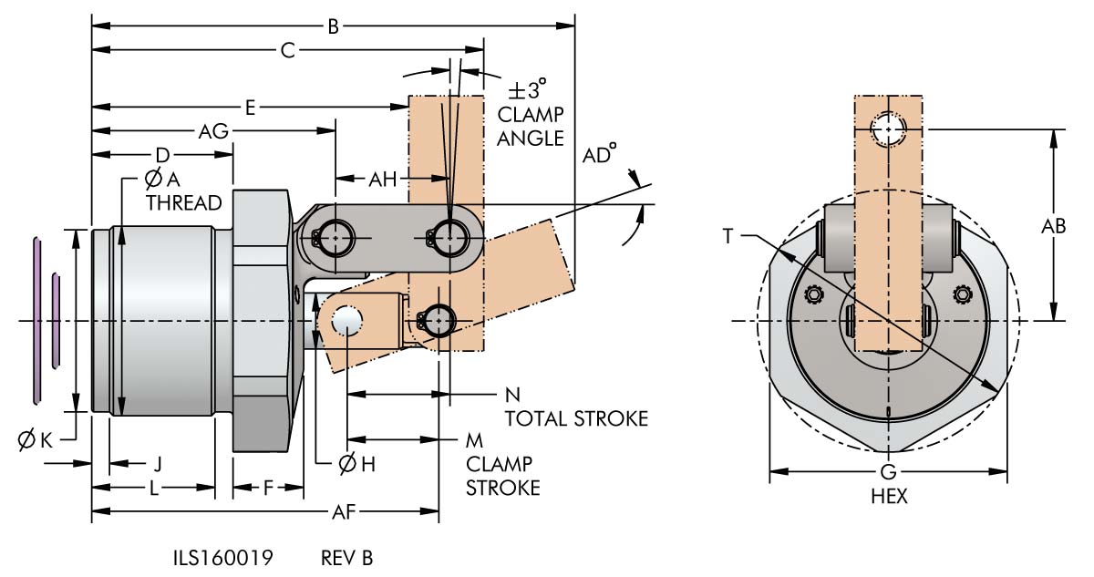 * Clamp capacities are listed at 5,000 PSI maximum operating pressure with a standard length link clamp lever installed. Minimum operating pressure is 500 PSI for double acting. The clamping force is adjustable by varying the hydraulic system pressure. Use of an extended length lever will result in a reduction of clamp force. (Actual force will vary slightly due to mechanical inefficiencies, and friction.)