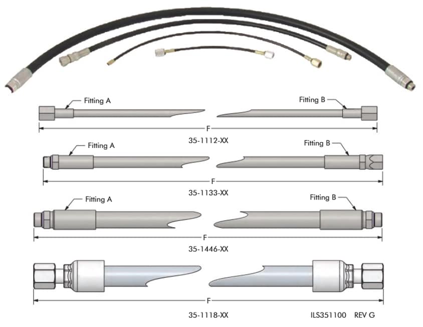 | 35-1118-05 | 3.50 | 0.50 | 0.80 | 3/4 - 16 Female JIC 37° Swivel | 3/4 - 16 Female JIC 37° Swivel | 60 in. |