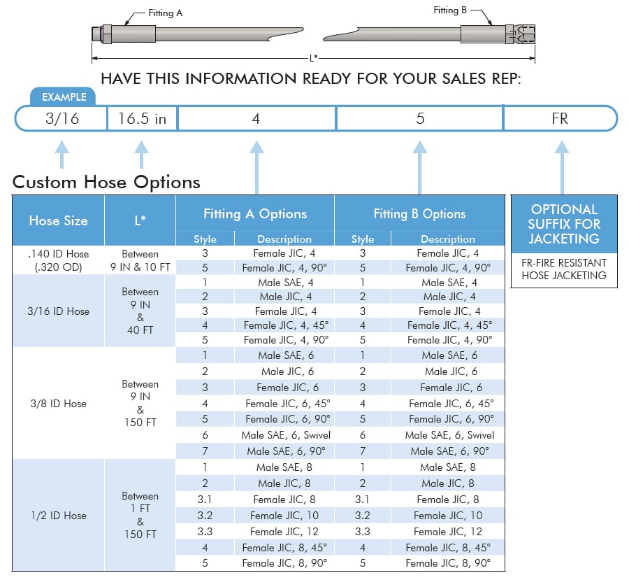 - We can make hoses in 1/8 foot length increments therefore length must be in 1.5″ increments based off of nearest foot.