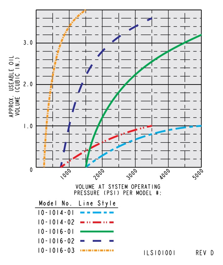 - For system operating pressures of 2,000-5,000 psi unit will provide up to 1 cu. in. of pressurized fluid reserve.