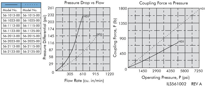 - Coupling force at operating pressure ranges from 0-800 and 0-1,800 pounds depending on model.