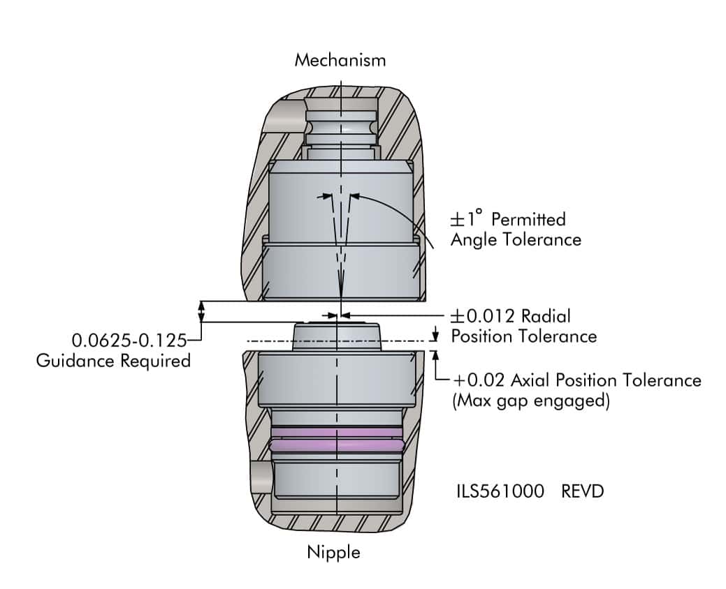 - Axial face seal between coupling mechanism and coupling nipple.