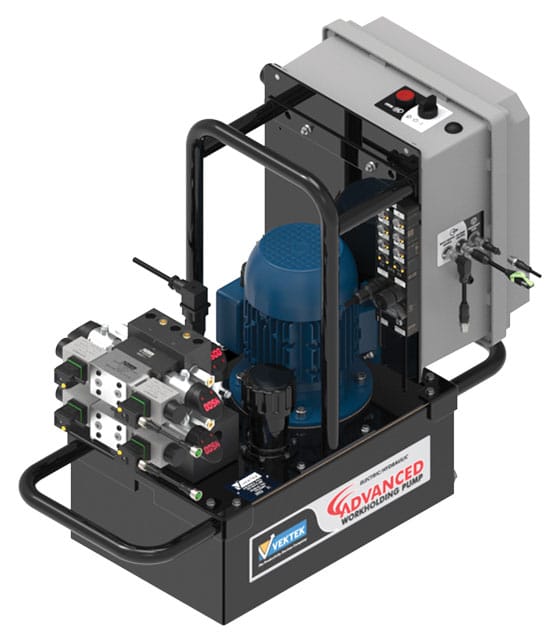 All Automation grade pumps are custom configured to order and for a specific fixture circuit function. Each Automation grade pump is assigned a specific part number for repeatable ordering, service, or replacement. Available in 1HP, 2HP, and 2 HP Low Pressure models and alternate voltage of 525-600 VAC on request. Example pumps are preconfigured illustrations which require additional customization for your specific application.