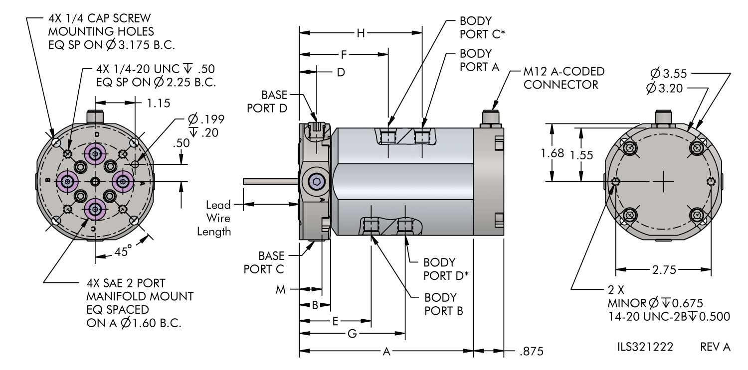 | 32-4264-02-ES12A | Quad Path | SAE 6 | 5.15 | 1.03 | 0.56 | 2.20 | 2.69 | 3.18 | 3.67 | 0.78 | 2 Amp | 120 VAC / 120 VDC | 40" |
