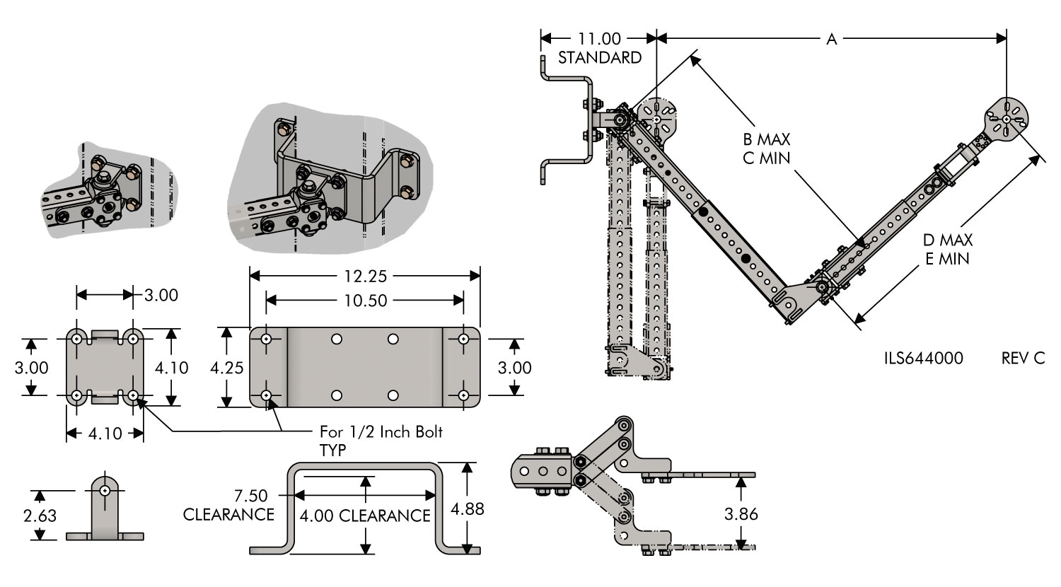 - Telescoping members allow flexibility to adapt to your machine for easy installation.