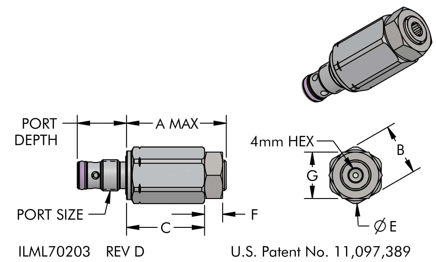 NOTE: Max flow not to exceed the individual device rating or 3.81/min whichever is lower. Maximum inlet pressure for In The Port sequence valve is 35 MPa, excess voids warranty. Consult the double acting work support, the swing clamp, or link clamp specifications page for the valve that is appropriate for your application.