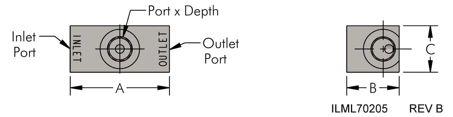 | Model No. | Port Type | Inlet/Outlet | A | B | C |