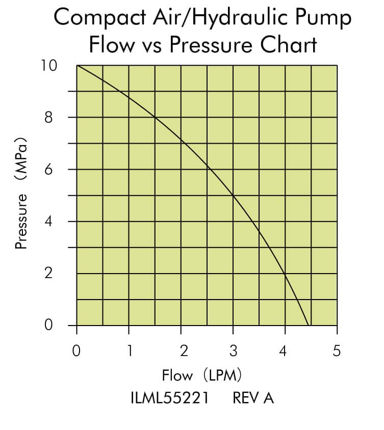 - Hydraulic Flow rates up to 4.4 liters per minute at 550 kPa air pressure input.