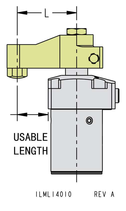 - Look down the centerline of the swing clamp, perpendicular to the arm.