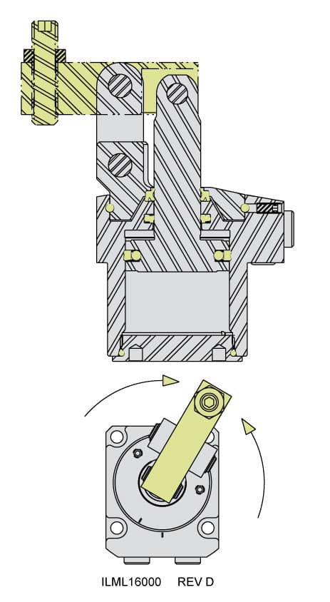 - Excellent alternative to a swing clamp when swing space or hydraulic pressure is limited.