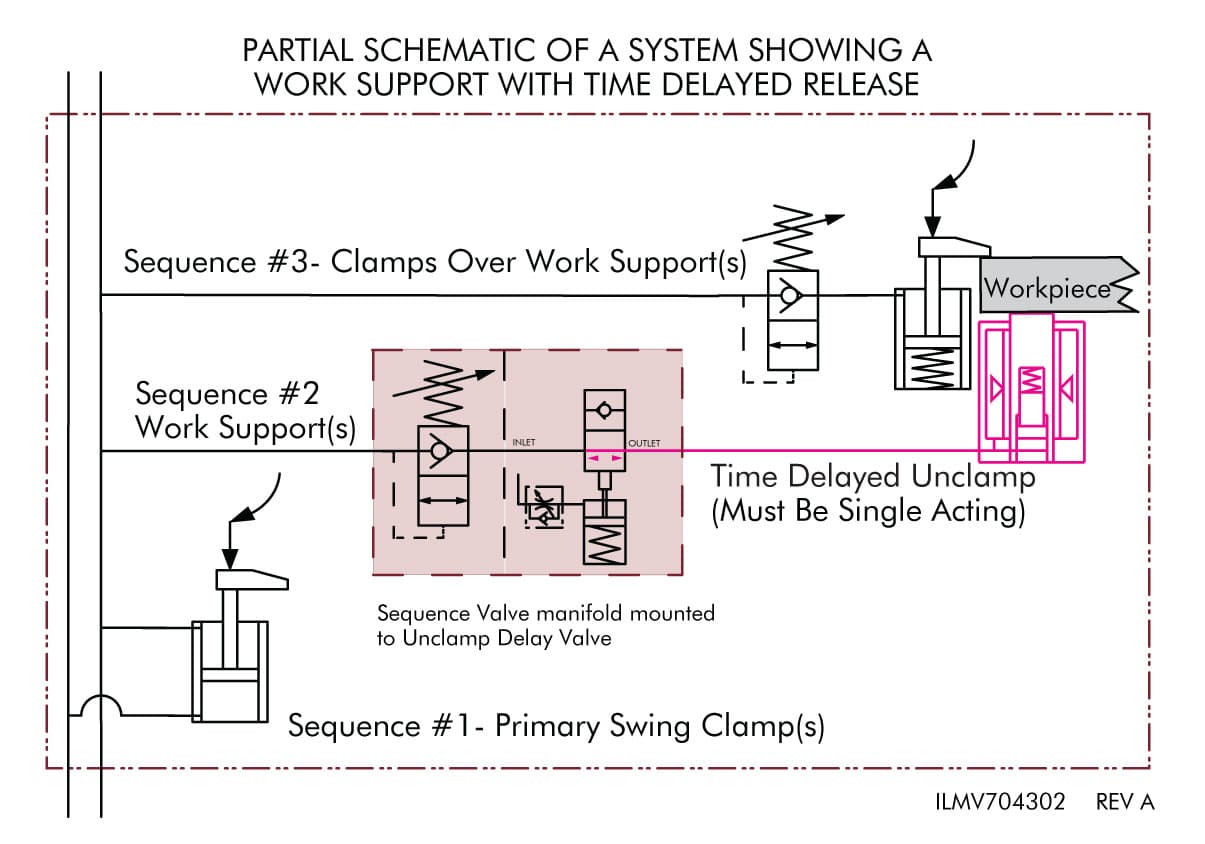 - Eliminate workpiece movement, caused by residual pressure when unclamping over a work support.