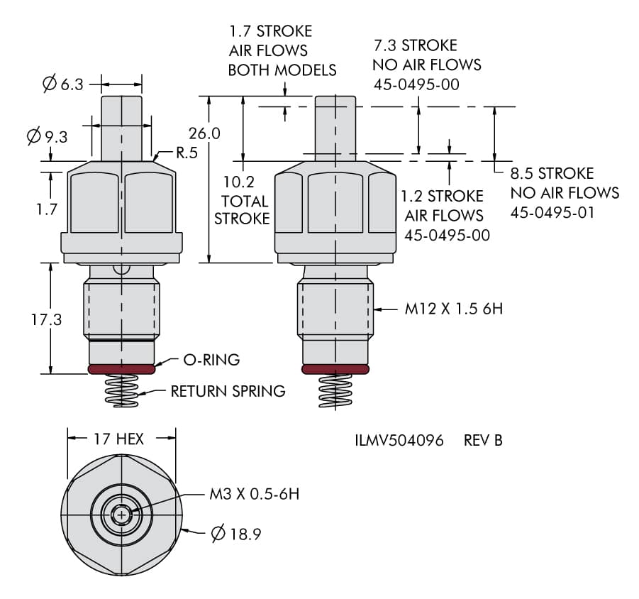 | 45-0495-00 | Over-Travel Sensing | 1000 kPa | 70 - 480 kPa | 10 - 20 L/Min | Min 80 | Min 310 | 10 Max | 6.6 - 13.3 | 2 | 25 Max |