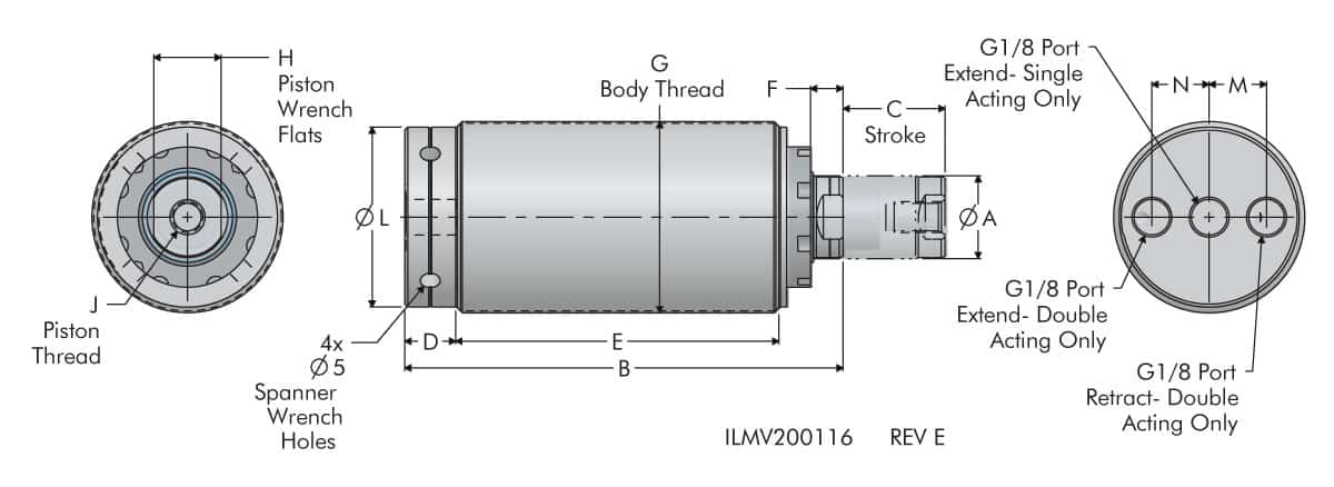 - Double Acting cylinders assure complete powered retraction for CNC controlled operations where time is critical or when heavy end effectors are used. Single acting cylinders should be used with small end effectors only and where retraction speed is not critical.