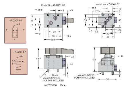 | 47-0301-57 | Manually Detented | Compact Seat | 12 l/min | 500 bar (50 MPa) |