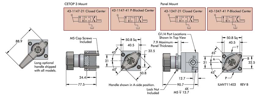 | 43-1347-41 | P-Blocked Center | Panel Mount | 5.7 l/min | 17 Bar (1.7 MPa) |