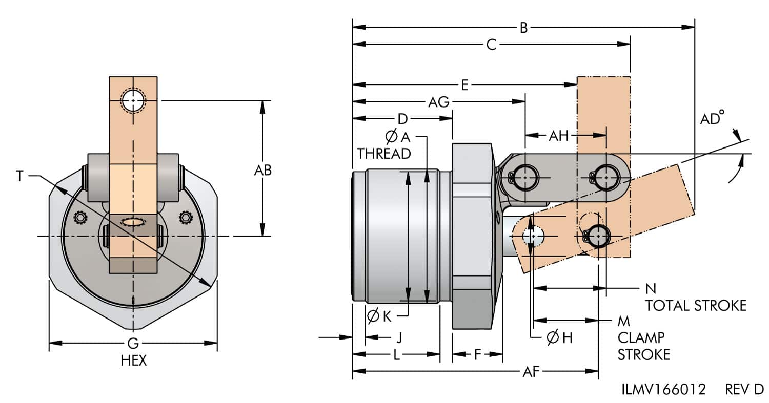 *Clamp capacities are listed at 350 bar maximum operating pressure with a standard length link clamp lever installed. Minimum operating pressure is 34.5 bar for double acting. The Clamping Force is adjustable by varying the hydraulic system pressure. Use of an extended length lever will result in a reduction of clamp force. (Actual force will vary slightly due to mechanical inefficiencies, and friction.)