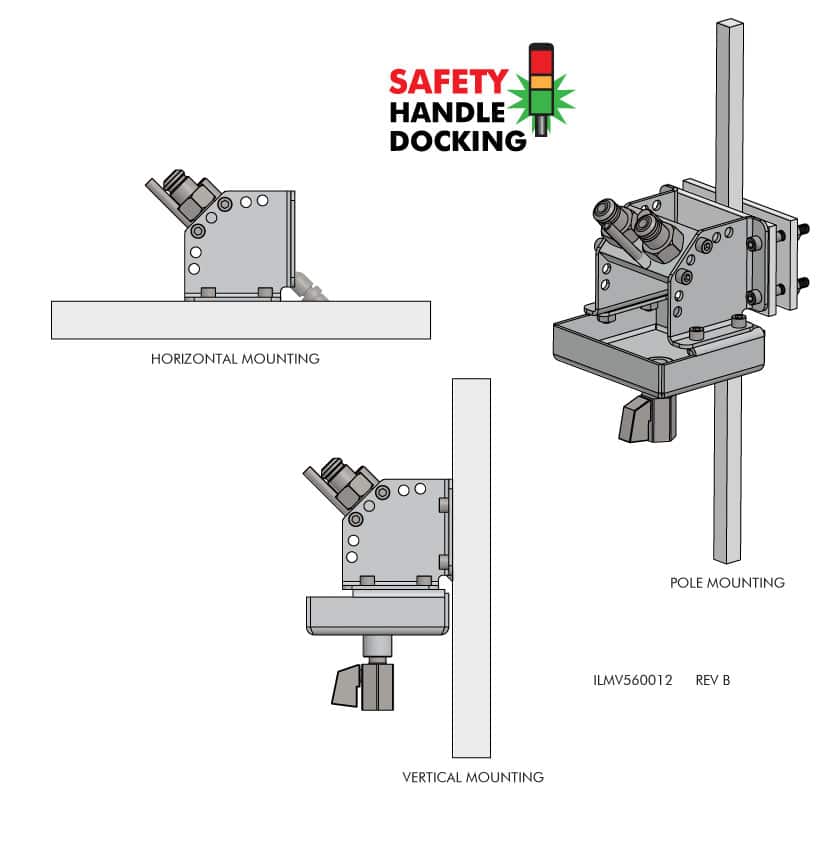 - The optional Proximity Switch confirms the decoupler handle and hoses are connected to the docking station. The pallet can then be safely shuttled into the machine.