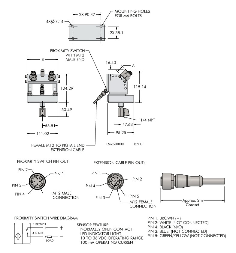 | Model No. | Proximity Switch | Handle Size | A Proximity Switch Height | B Dock Width |