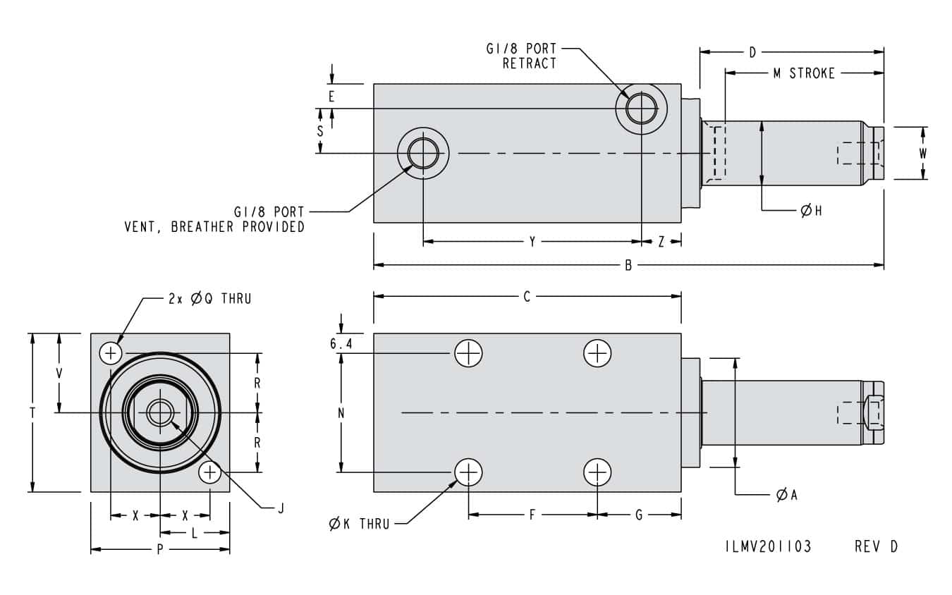 - No special mounting hardware required, secure these draw action cylinders by bolting in place.
