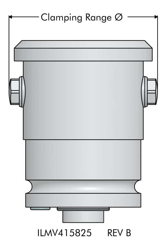 - Bore clamp with 2 points used for concentric positioning of a bore, internal clamping expands radially to center the bore.