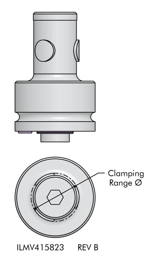 - Bore clamp with 3 points for concentric positioning of the ID of a bore, internal clamping expands radially to center the bore.