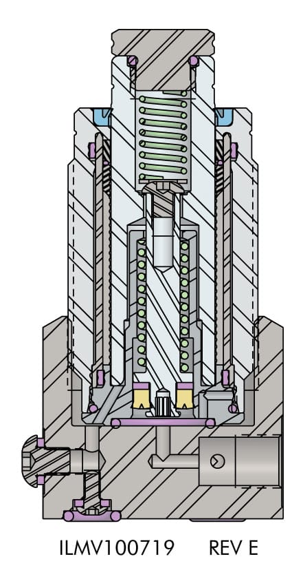 - Four bolt base is compatible with Vektek in port flow control and in port sequence valves.