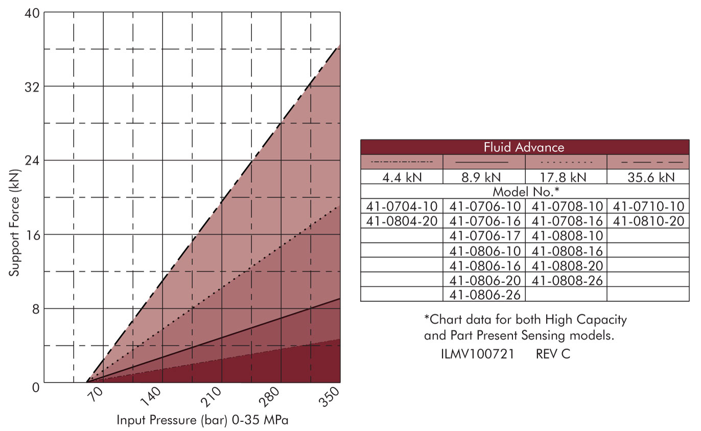 NOTE: The maximum system back-pressure a fluid advance work support can overcome is 0.7 bar (0.07 MPa) Returning back-pressure greater than 0.7 bar (0.07 MPa) may cause slow or failed retraction.