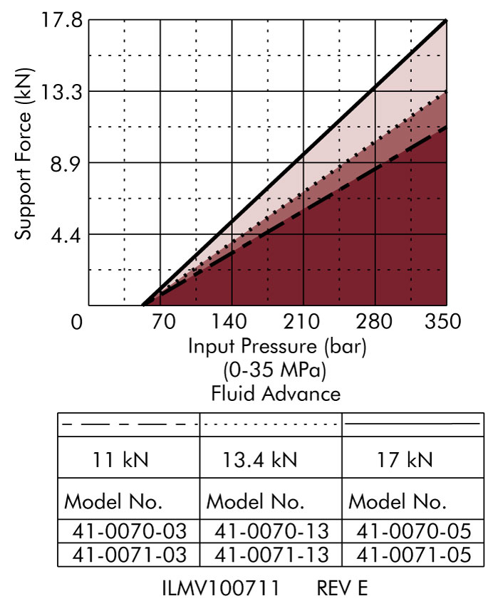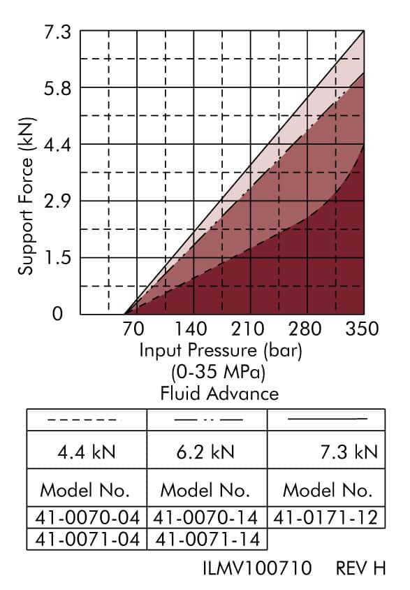 * Support capacities are listed at 350 bar (35 MPa) maximum operating pressure. Support capacities for other pressures must be determined by consulting capacity charts.