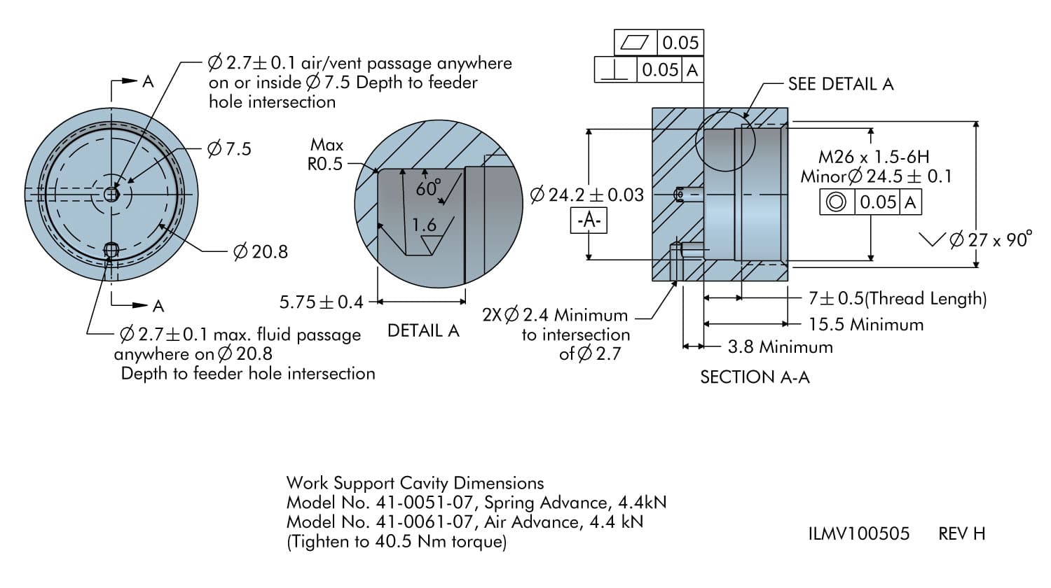 | 41-0051-07 | M26 X 1.5 | 47.5 | 6.5 | 40.5 | 7.5 | 5.5 | 23 | 16 | M8 X 1.25 X 7.5 | 24 |
