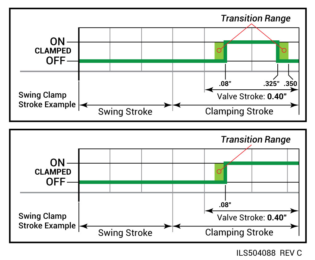 The Pneumatic Confirmation Valve confirms the stage of loading before or after clamping. It is adaptable to multiple devices including: swing clamps, link clamps, cylinders and supports.